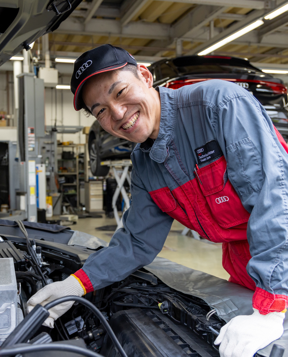 整備士の仕事は、お客様の命を預かる非常に責任の重い仕事だと考えています。そのため、作業スピードも確かに重要ですが、一つひとつの作業を正確かつ丁寧に行うことが何よりも大切です。Audiというブランドの名に恥じない高い品質のサービスを提供するため、これからも日々努力を続けていきます。