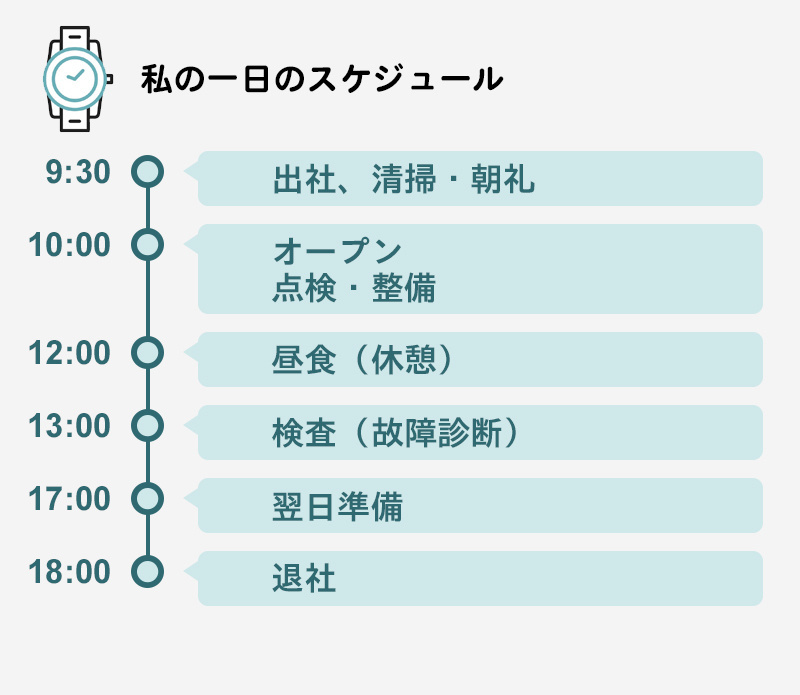 電気自動車が普及し、内燃機関のない車が増える中、安全な作業や診断には高電圧などの知識が必要となっています。そのため、自動車の技術書や参考書を常に確認しながら業務に取り組んでいます。今後、電気自動車やハイブリッド車がさらに増えることが予想されるため、電気に関する最新情報に対応できる能力を養い、さらなる自己成長を目指しています。